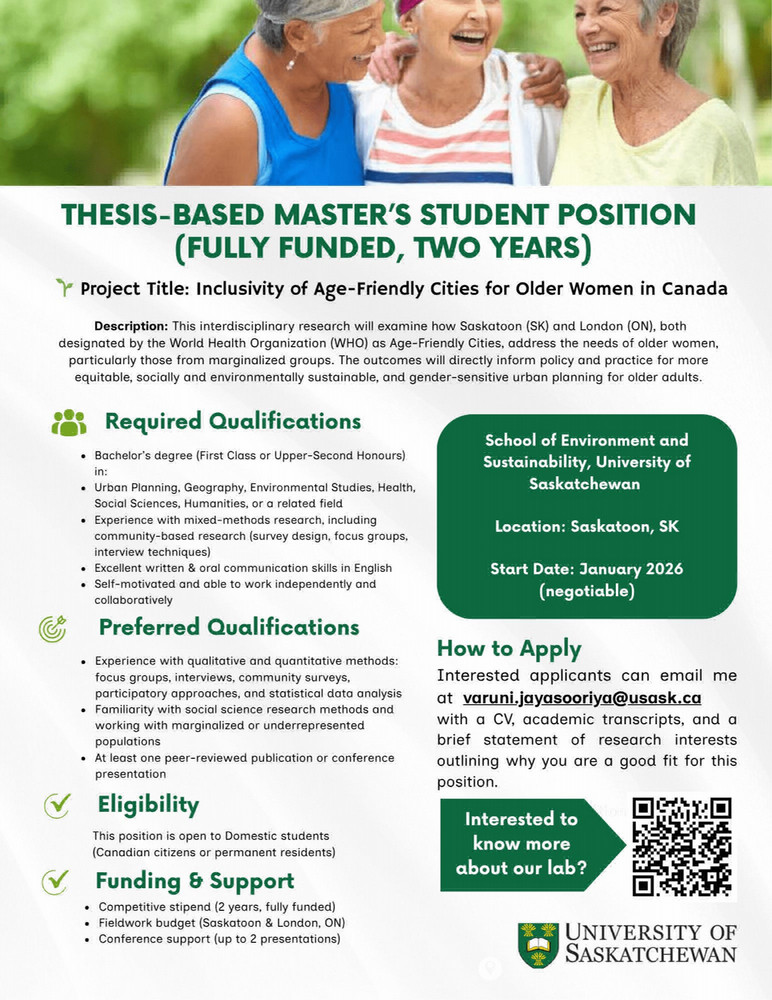 This area focuses on advancing socially sustainable urban planning through the lens of age-friendly cities. It integrates spatial data analysis with participatory research to understand how urban form, accessibility, and neighborhood design influence the mobility, safety, and well-being of older adults. By combining geospatial modelling with community co-design, this area of research within our lab identifies spatial inequities, prioritizes inclusive planning interventions, and supports evidence-based decision-making to create healthier, more connected, and equitable urban environments for aging populations.